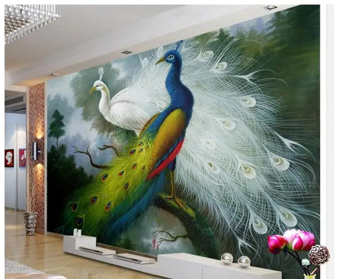 Custom photo wallpaper Large 3D sofa TV background wallpaper mural wall Painting Love Love Peacock 3d mural wallpaper 20159388|wallpaper blue|wallpaper glasspainting elephant - AliExpress