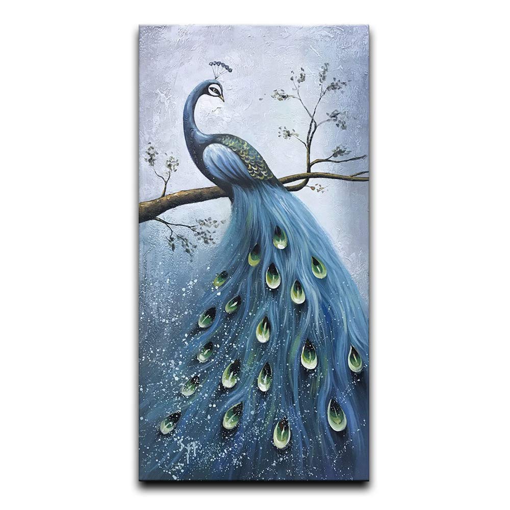 Blue Peacock Artwork Canvas Wall art 100% Hand Painted Oil Painting 3D – E-crossmall