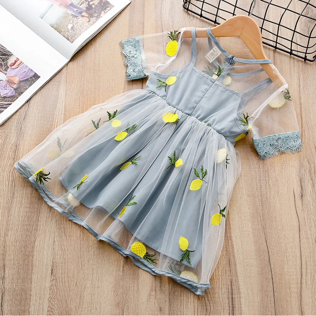 Kids Clothes Shoes Accs Kids Baby Girls Lemon Pineapple Embroidery Tulle Party Pageant Dress Light Blue Colmartropicale Com My